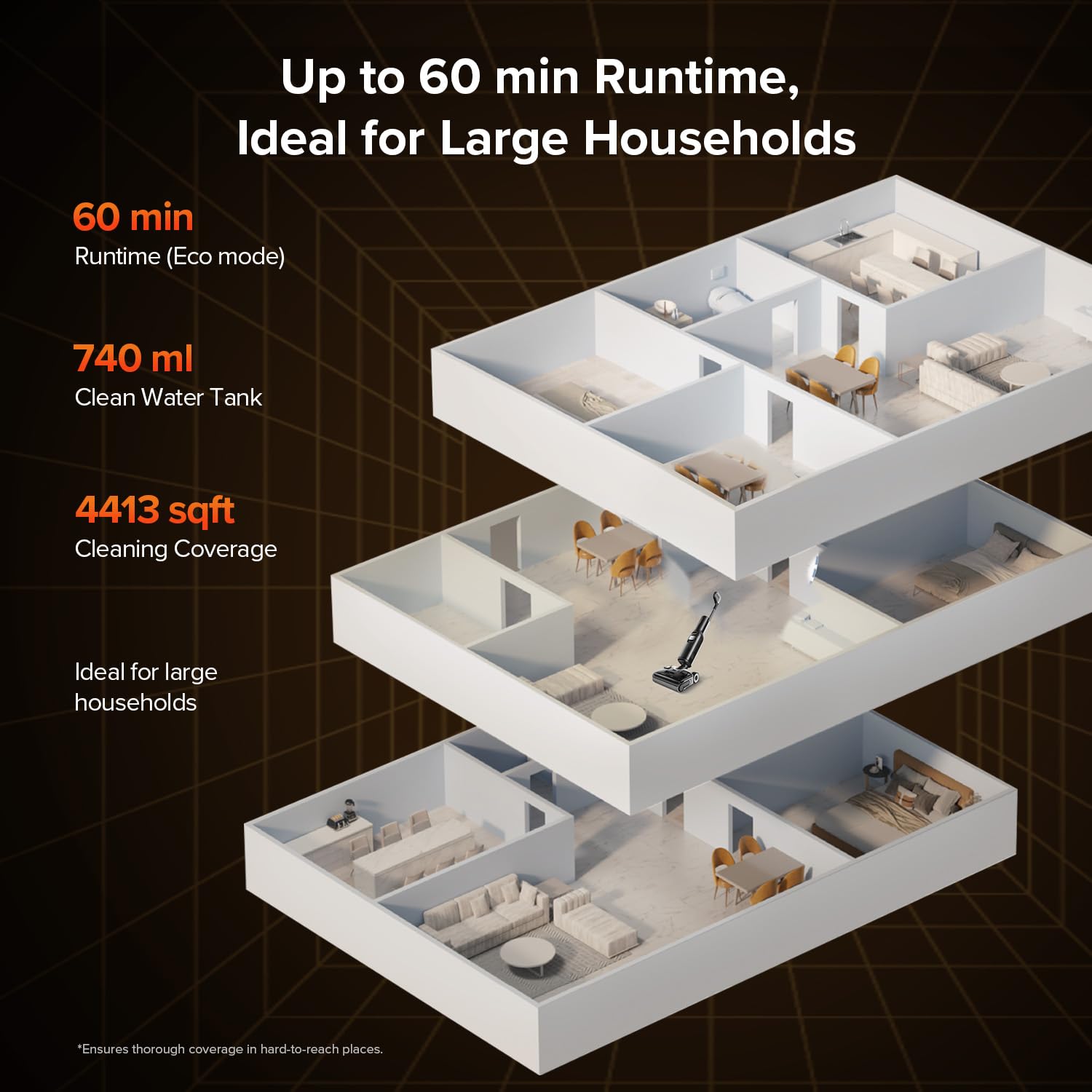 Effortlessly tackle household cleaning with intelligent AI and self-cleaning features, making chores less time-consuming and more efficient.